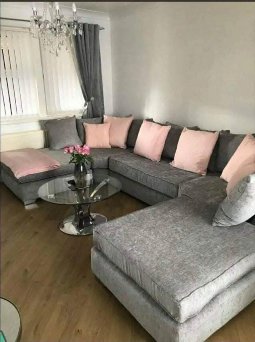 Large Bishop U-Shape Sofa with removable 2x Large stools, high/scater back cushions - charcoal chenille / Scatter Back U Shape